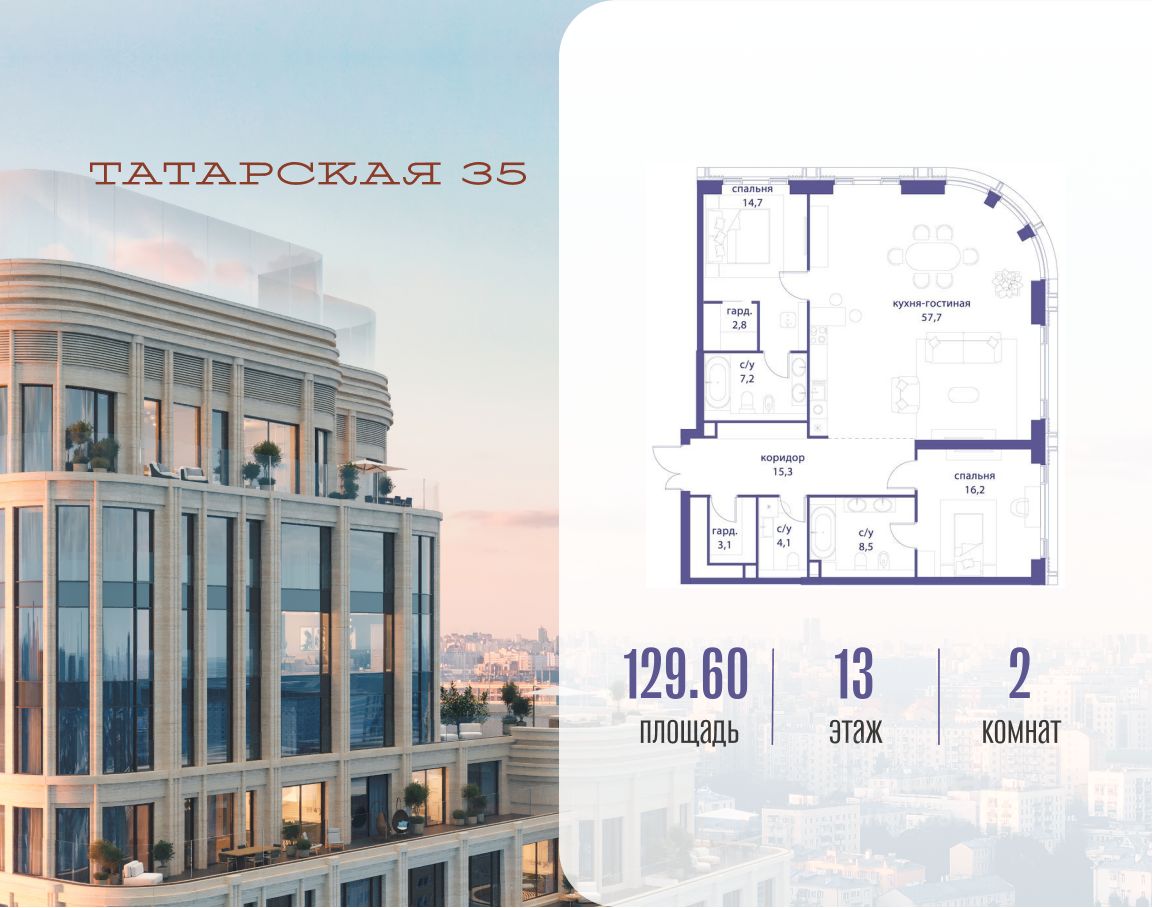 ТАТАРСКАЯ, 35 - новая архитектурная доминанта Замоскворечья, достопримечательность на фотопанорамах исторического центра Москвы. Элитный дом, созданный для тех, кто умеет смотреть далеко вперед, мыслить масштабно и воплощать собственный сценарий жизни.