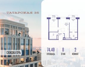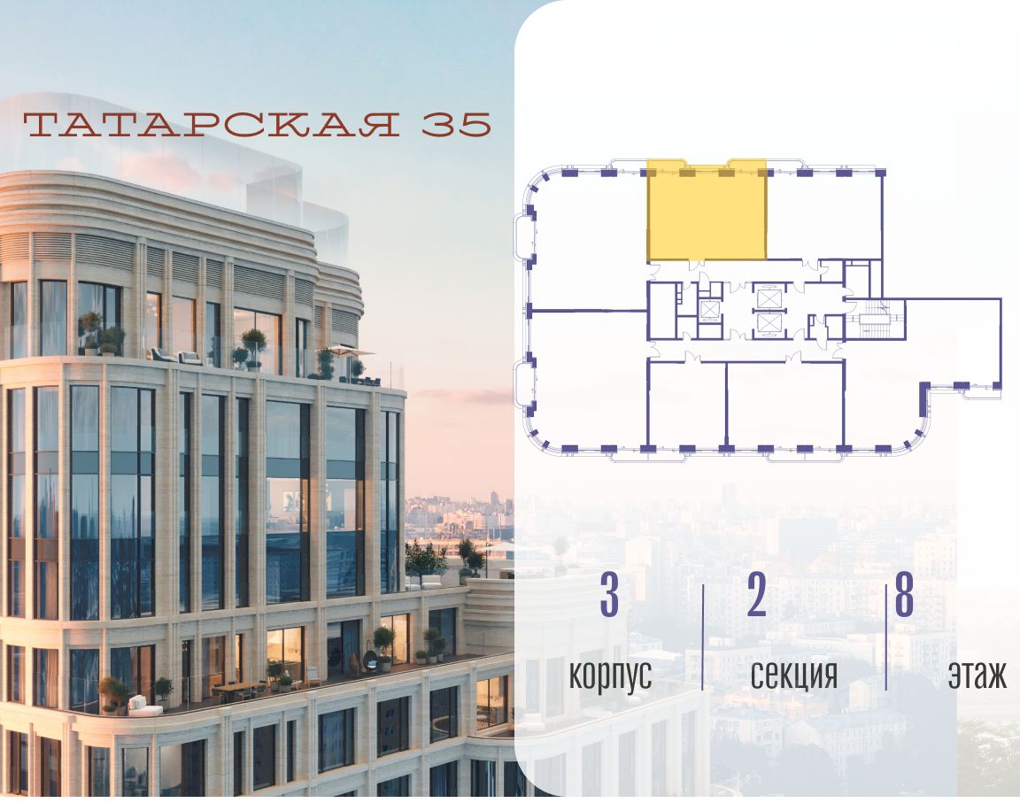 ТАТАРСКАЯ, 35 - новая архитектурная доминанта Замоскворечья, достопримечательность на фотопанорамах исторического центра Москвы. Элитный дом, созданный для тех, кто умеет смотреть далеко вперед, мыслить масштабно и воплощать собственный сценарий жизни.