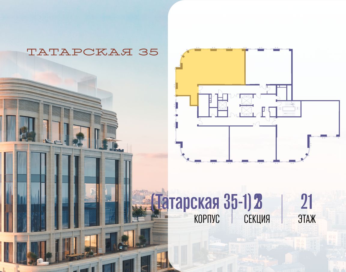 ТАТАРСКАЯ, 35 - новая архитектурная доминанта Замоскворечья, достопримечательность на фотопанорамах исторического центра Москвы. Элитный дом, созданный для тех, кто умеет смотреть далеко вперед, мыслить масштабно и воплощать собственный сценарий жизни.