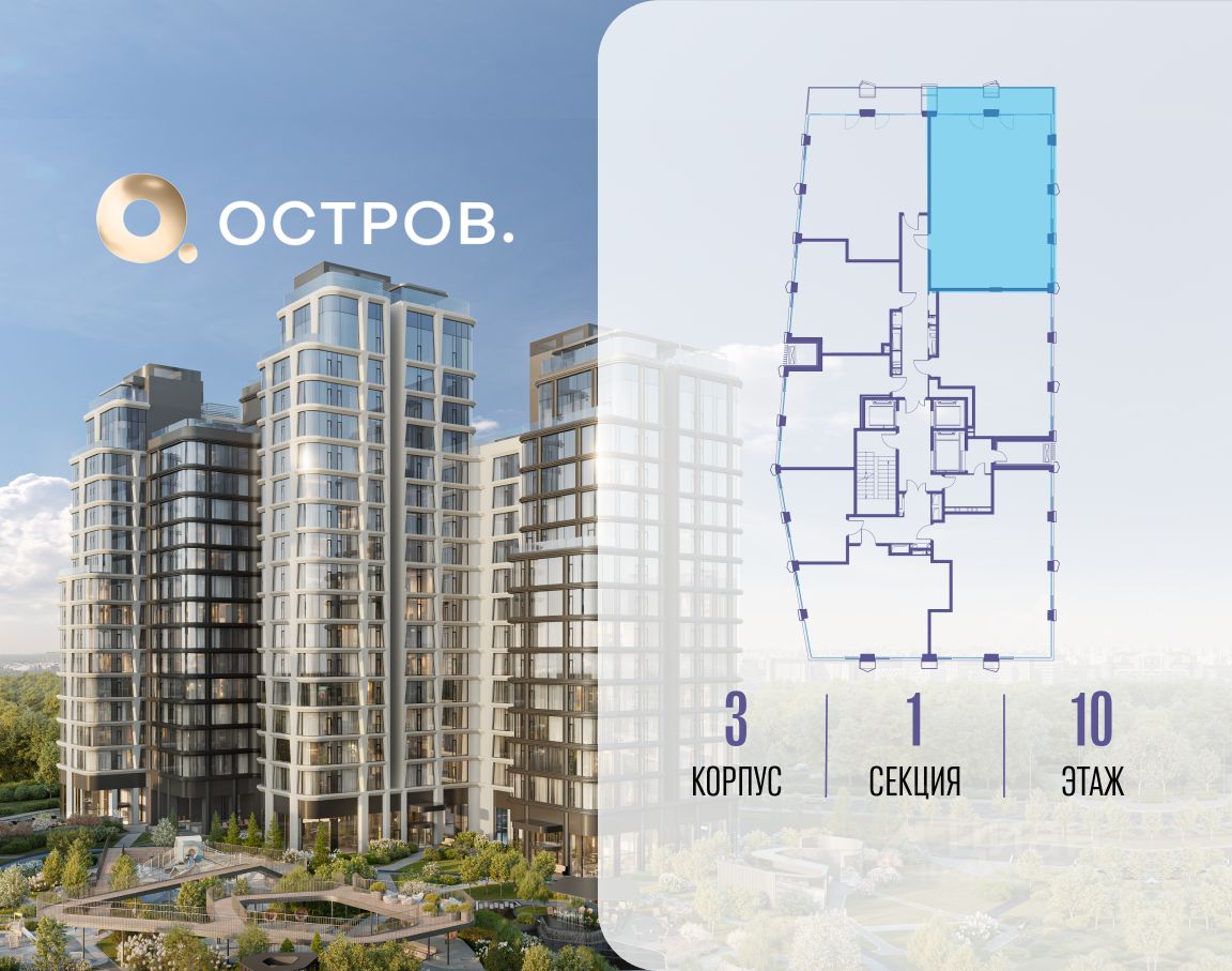 ОСТРОВ.12.1 - часть жилого комплекса на западе Москвы, в 15 минутах езды от центра. Это настоящий заповедник посреди большого города, в окружении реки и 650 га заповедников. Здесь все необходимое находится по соседству: от детского сада до супермаркета, от фитнес-зала до серфинг-центра. На территории созданы все условия для отдыха и общения: клубная инфраструктура в домах и дворы-парки, набережные и променады, маршруты для спортсменов, детей и возрастных жителей. В нескольких минутах ходьбы расположена станция метро "Мнёвники" БКЛ. На автомобиле - 10 минут до Москва-Сити и 15 минут до Садового кольца.