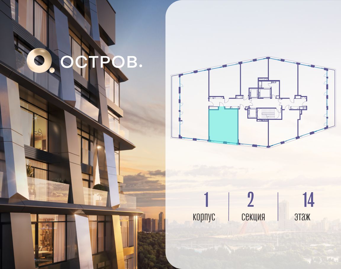 ОСТРОВ.12.1 - часть жилого комплекса на западе Москвы, в 15 минутах езды от центра. Это настоящий заповедник посреди большого города, в окружении реки и 650 га заповедников. Здесь все необходимое находится по соседству: от детского сада до супермаркета, от фитнес-зала до серфинг-центра. На территории созданы все условия для отдыха и общения: клубная инфраструктура в домах и дворы-парки, набережные и променады, маршруты для спортсменов, детей и возрастных жителей. В нескольких минутах ходьбы расположена станция метро "Мнёвники" БКЛ. На автомобиле - 10 минут до Москва-Сити и 15 минут до Садового кольца.