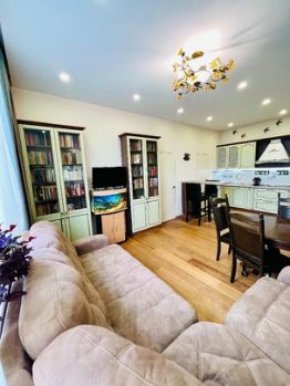 площадь квартиры 76.5 кв.м , 2 изолированные комнаты (10 + 17 + 18 кухня гостиная). Потолки 3 метра! Кондиционер в каждой комнате.