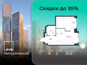 В жилом квартале, расположенном на границе с природным заказником "Долина реки Очаковки", продаётся 2-комнатная квартира площадью 35.80 кв.м без отделки. Квартира расположена на 8 этаже 54-этажного корпуса 1 в жилом комплексе бизнес-класса Level Мичуринский (компания Level Group/Левел групп).