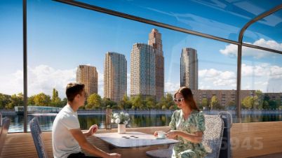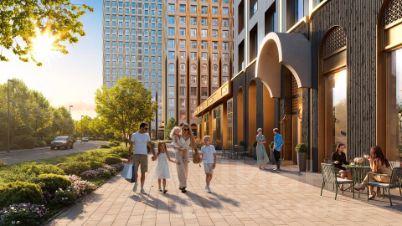Современный премиум-квартал ЭРА на Дербеневской набережной, формирующий новый архитектурный облик Даниловского района Москвы. Жилой комплекс из шести высотных корпусов выполнен в актуальной интерпретации стиля ар-деко, где ритмичные линии фасадов, натуральный мрамор и изысканные орнаменты создают гармоничный и запоминающийся образ.