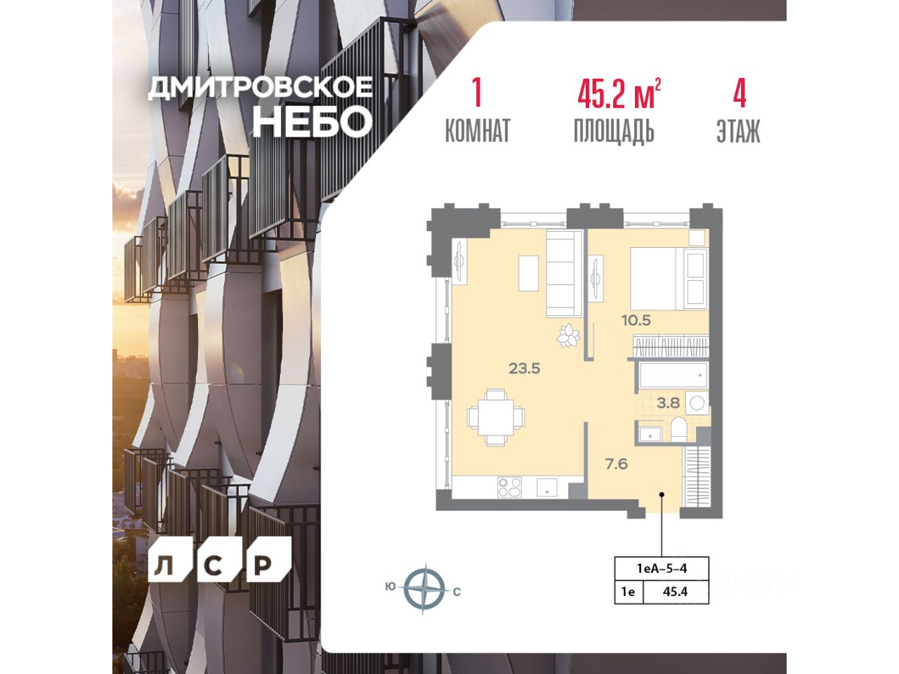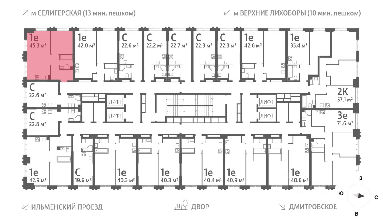 Продается 1-комнатная квартира общей площадью 45.2 кв. метров на 4 этаже жилого комплекса Дмитровское небо. Комплекс возводится в Северном административном округе в районе Западное Дегунино в Ильменском проезде, в 5 минутах ходьбы от метро "Верхние Лихоборы", а автомобилисты могут за пару минут выехать на Ильменский проезд и по нему добраться до Дмитровского шоссе.