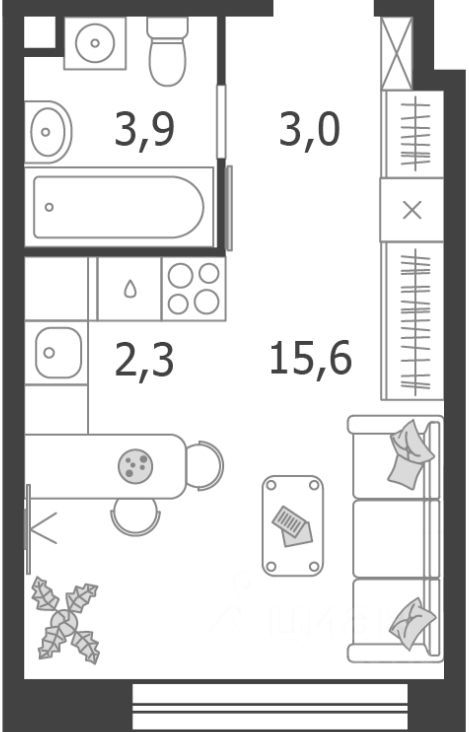 Вашему вниманию предлагается студия в ЖК Shagal общей площадью 24, 8 кв.м. на 15 этаже. Срок сдачи - IV квартал 2026 года.