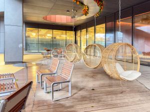 Зона ресепшен, зоны ожидания, переговорная, детская игровая комната, лаунж-зона, почтовая комната, колясочные, подземный паркинг, кладовые помещения, комната для сбора жителей