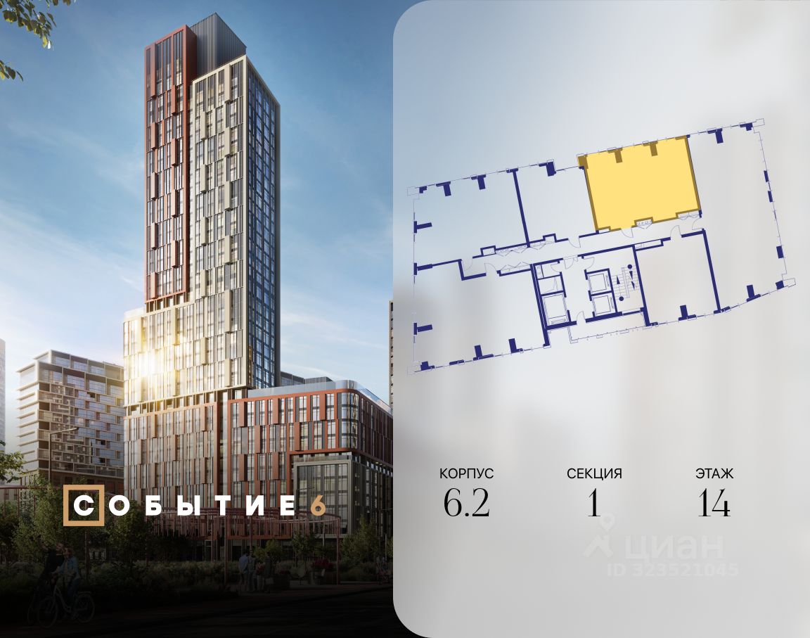 Продаётся 2-комнатная квартира от застройщика: общая площадь 72.50 м², жилая 31.50 м², кухня 24.40 м², 14-й этаж, жилой квартал "Событие-6", корпус 2 (секция 1) Срок сдачи: 1 квартал 2029 года.