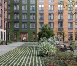Дворы: закрытые для автомобилей, с детскими и спортивными площадками, велодорожками, зонами отдыха и воркаут-пространствами.
