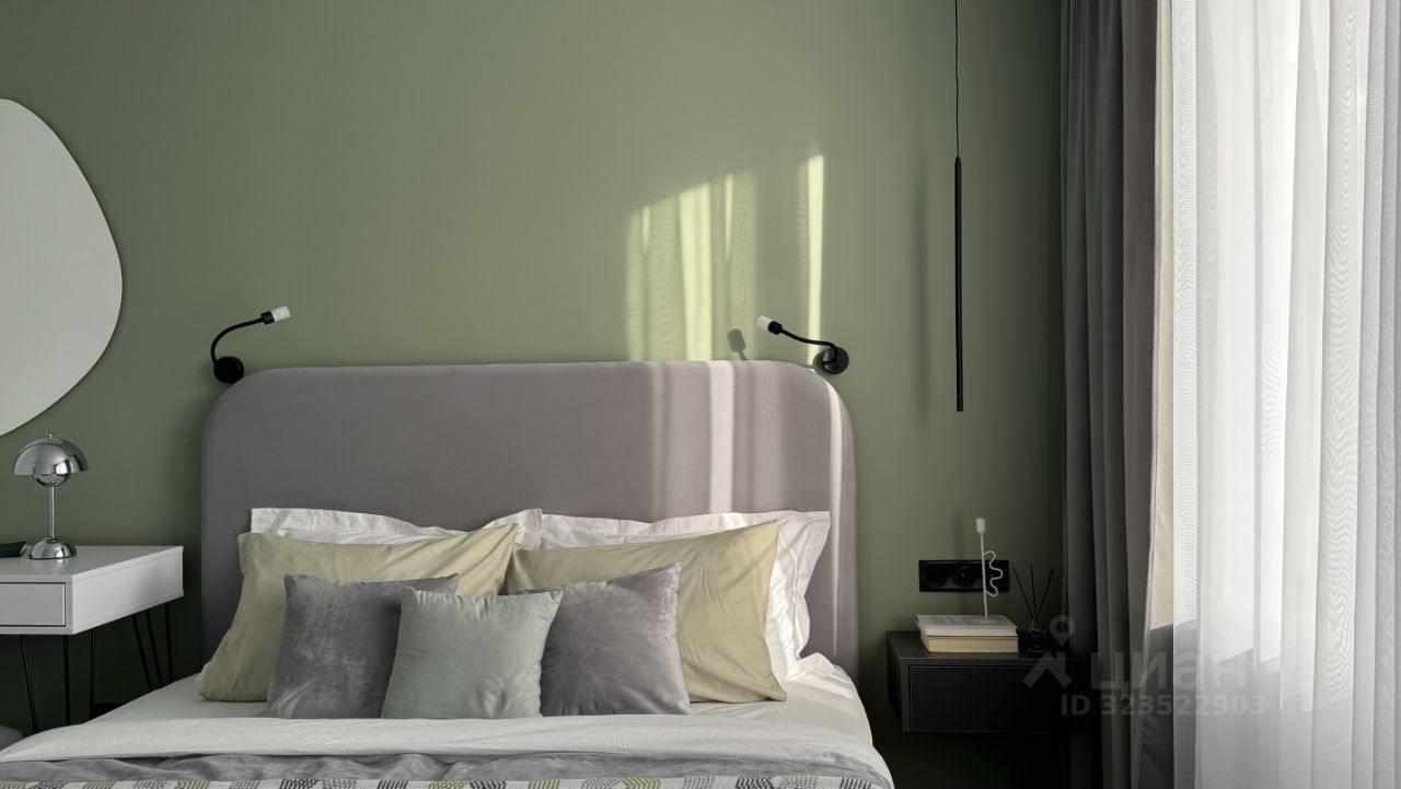 Дизайн в спокойных оливковых и серо-бежевом цвете расслабляет и обволакивает с первого взгляда.