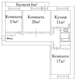 КВАРТИРА. Просторные изолированные комнаты 20+17+13м² и коридор. Кухня 11м² квадратной формы. Санузел раздельный. Вместительный балкон 6м². Соседи спокойные интеллигентные люди.