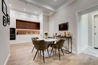 Удобная планировка: уютная гостиная совмещена с обеденной и кухонной зоной, изолированная спальня с большой гардеробной комнатой, комната свободного назначения (детская, рабочий кабинет или гостевая спальня), большой с/у совмещенный с ванной и душевой кабиной (установлен rainshower), постирочная со стиральной и сушильной машиной Miele. В квартире сделан качественный дизайнерский ремонт с использованием дорогих натуральных материалов, установлена сантехника Grohe, бытовая техника Neff, холодильник Liebherr. В квартире установлены кондиционеры Mitsubishi, электрические карнизы для штор, подогрев полов, фильтры очистки воды. Высокие потолки 3,3 м. создают дополнительное пространство!