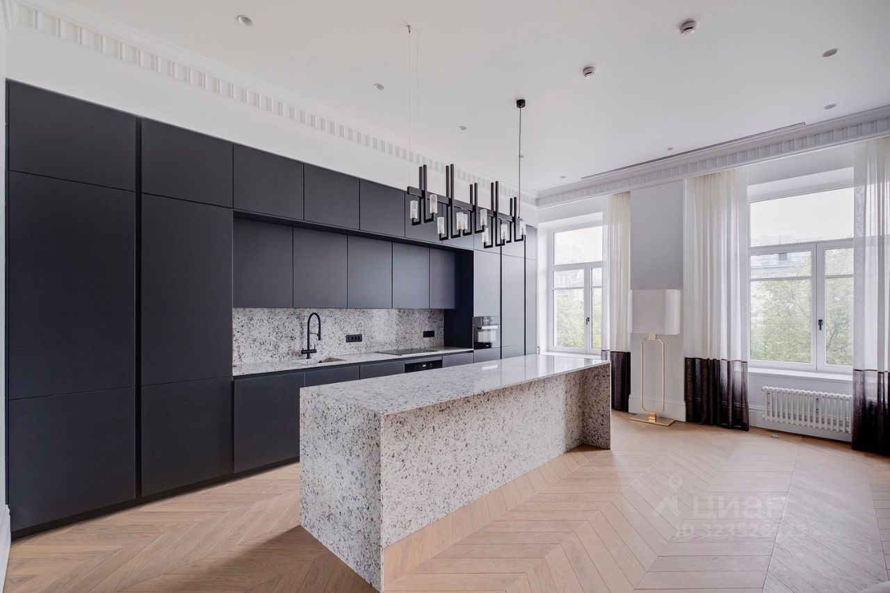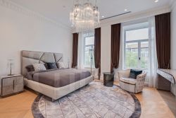 В квартире выполнен ремонт в стиле нео классики. Отделка выполнена из редких сортов итальянского и испанского мрамора, дубовый паркет, немецкая сантехника, система кондиционирования и другие передовые инженерные решения. Например, климат-контроль расположен не просто в каждой квартире, а в каждой комнате. Во всех квартирах установлены кухни немецкого премиального бренда LEICHT, выполненные по индивидуальному дизайн-проекту, а также кухонная техника Miele.