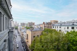 Предлагается к продаже квартира в уникальном ЖК "Дом на Хлебном". Шесть минут пешком до Патриарших прудов, при этом здесь нет туристов, тихий посольский район, тщательно охраняемый.