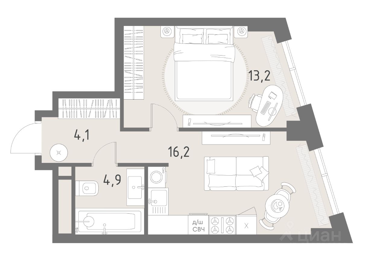 Продуманная европланировка, которую легко зонировать под ваши запросы. Потолки от 3,1 м.