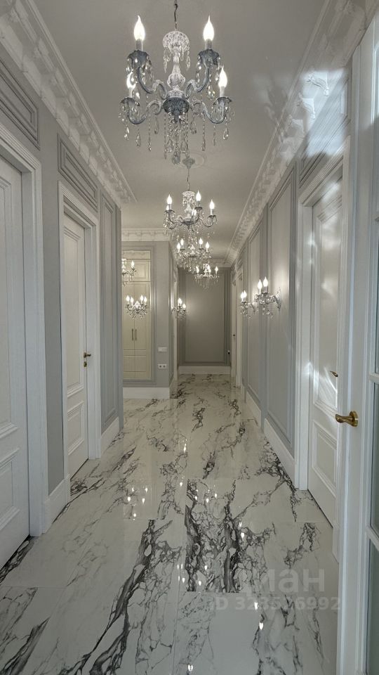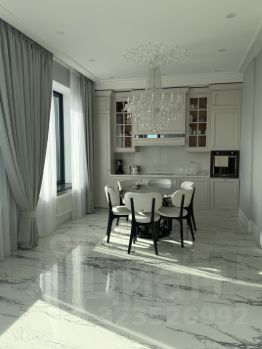 В отделке использованы итальянская плитка, эксклюзивная итальянская паркетная доска, американская краска на стенах, лепнина. Мебель для Кухни, Детской, Спальни выполнены из натурального дерева (производство Италии).