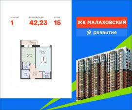 Продается 1-комнатная квартира площадью 42.23 . Квартира расположена на 15 этаже 17 этажного дома, в 201 корпусе.