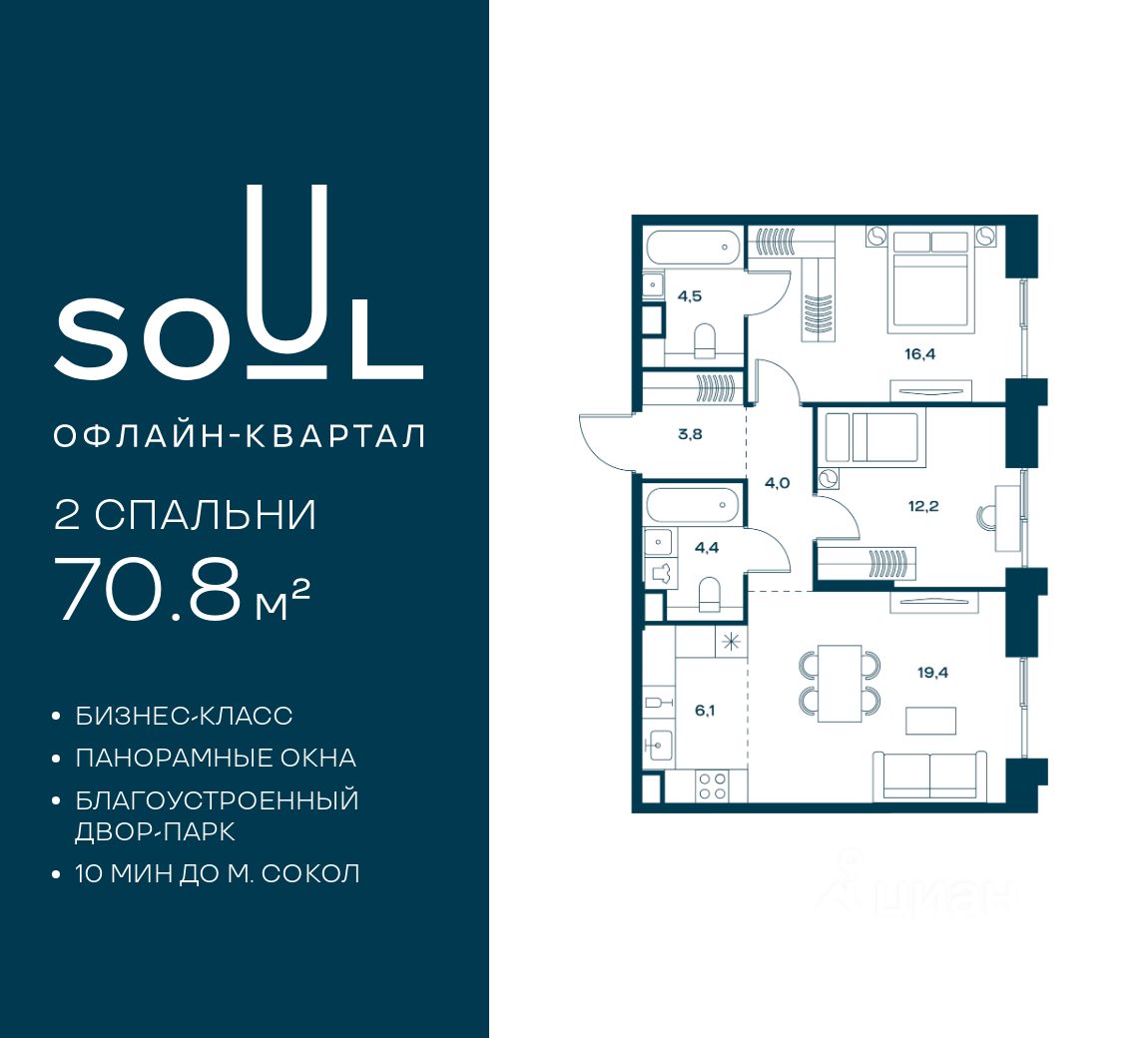 Проект бизнес-класса SOUL от девелопера FORMA. До метро Сокол 10 мин пешком. Архитектура от британского бюро SimpsonHaugh. Благоустройство дворов — Gillespies и GAFA. Территория состоит из культурного парка и приватных дворов. Озеленение в эстетике лесного оазиса. Насыщенное благоустройство: прогулочные тропинки, релакс-зоны, пряный и сенсорный сады, развивающие детские площадки и воркауты.
