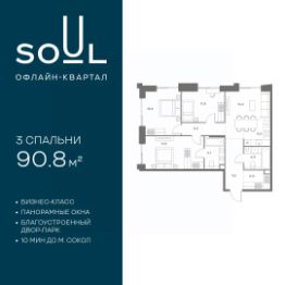 Продается 3-к. квартира номер 513 общей площадью 90.8 кв.м. на 14-м этаже 18 этажного дома, Корпус 8. Без отделки.