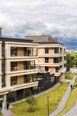 Продажа квартиры с террасой в малоэтажном клубном проекте "Снегири ЭКО" на Мосфильмовской. Планировка свободная, площадь и количество окон позволяют спланировать 3 спальни с собственными ванными и гардеробными, просторную гостиную, необходимое количество подсобных помещений. Есть терраса. Высота потолка 3,5 м. Из окон, ориентированных на 3 стороны света, открывается красивый вид на парк, прибрежную зону и во внутренний двор. В стоимость включены 2 машиноместа и кладовое помещение. Описание ЖК: Клубный поселок имеет невысокую застройку 4-8 этажей, которая отлично вписывается в окружающий ландшафт. Из панорамных окон открывается прекрасный вид на парк и прибрежную территорию. ЖК Снегири ЭКО реализовался в рамках эко-ориентированной концепции: акцент делался на единении человека с природой, на отличной экологии и на воплощении всех преимуществ проживания за городом, но в пределах мегаполиса. ЖК напоминает уютный загородный поселок из 16 домиков, ещё одна черта комплекса: камерность и приватность. В комплексе всего 150 квартир. Архитектурная концепция проекта дает возможность жить загородной жизнью в пределах мегаполиса - до центра можно добраться в течение 15 минут. На этаже по две квартиры, все квартиры ориентированы на три стороны, на вторых этажах - квартиры с террасами, на первых - с патио. Высокие потолки h 3,50. Благоустроенная охраняемая территория с отдельным выходом к озеру. Расположение вблизи природного заказника Долина Реки Сетунь и Парка Победы. Удобный выезд на Кутузовский проспект и новую магистраль Генерала Дорохова позволит жителям добираться до центра Москвы или до МКАДа за считанные минуты. В ЖК предусмотрена следующая инфраструктура: фитнес, ресторан и начальная школа. В отделке использованы натуральные материалы: природный камень и клинкерный кирпич. Звуконепроницаемое безопасное стекло Reynaers в алюминиевой раме не содержит в своем составе оксидов металлов, что соответствует международным экологическим требованиям и самым высоким требованиям по теплофизике и энергоэффективности. В каждом корпусе центральная система кондиционирования и приточно-вытяжной вентиляции. Подземный паркинг, кладовые помещения.
