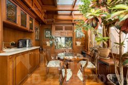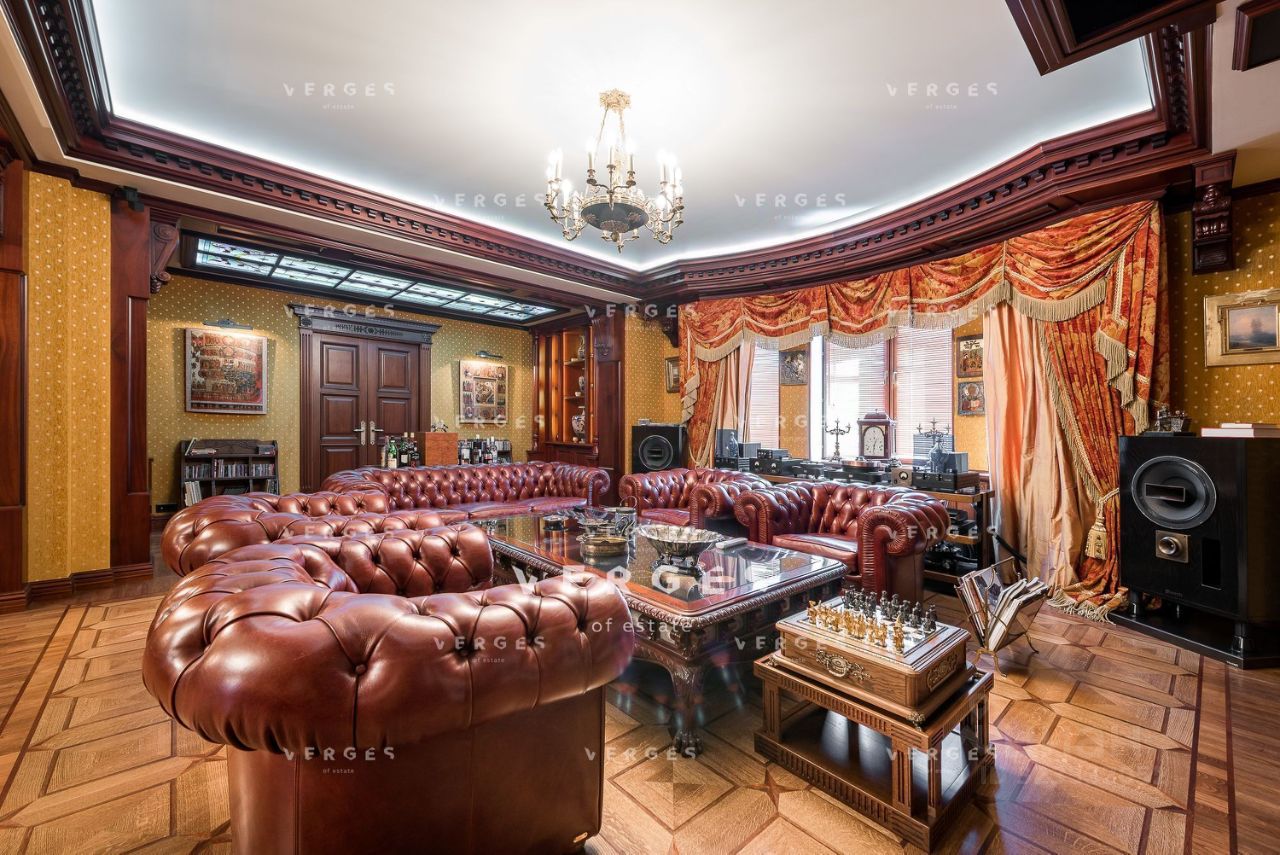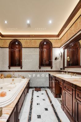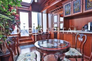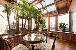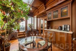 Возможна покупка без антиквариата! Продается великолепная 4-х комнатная квартира-пентхаус с теплой верандой и открытой террасой. Площадь пентхауса составляет 256,2 кв. м. (230,5+25,7). Выполнен ремонт в стиле "Английская классика" с применением натуральных дорогостоящих материалов. Из окон квартиры открываются панорамные виды на город. Удобная планировка: кухня-столовая, гостиная с действующим камином, кабинет, гостевой санузел, две прекрасные спальни с гардеробными и санузлами, в одной из которых в санузле расположена сауна. В квартире собственный зимний сад и терраса, выход на террасу из кабинета.