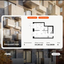 Продаётся 1-комн. квартира площадью 34 кв.м на 4 этаже 12 этажного дома (Корпус 4.2, Секция 2) проекта ПИК Амурский парк. Светлый просторный подъезд на уровне земли, функциональная планировка, большие окна, c отделкой.