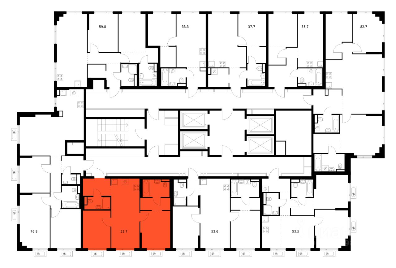 Продаётся 2-комн. квартира площадью 53,7 кв.м на 26 этаже 27 этажного дома (Корпус 4.3, Секция 3) проекта ПИК Амурский парк. Светлый просторный подъезд на уровне земли, функциональная планировка, большие окна, c отделкой.