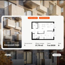 Продаётся 1-комн. квартира площадью 37,7 кв.м на 8 этаже 27 этажного дома (Корпус 4.3, Секция 3) проекта ПИК Амурский парк. Светлый просторный подъезд на уровне земли, функциональная планировка, большие окна, c отделкой.