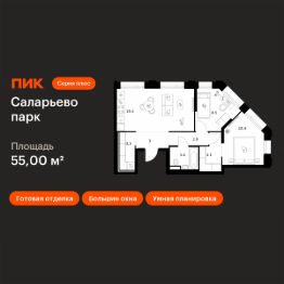 Продаётся 2-комн. квартира площадью 55 кв.м на 11 этаже 24 этажного дома (Корпус 82.8, Секция 8) проекта ПИК Саларьево парк. Светлый просторный подъезд на уровне земли, функциональная планировка, большие окна, c отделкой.