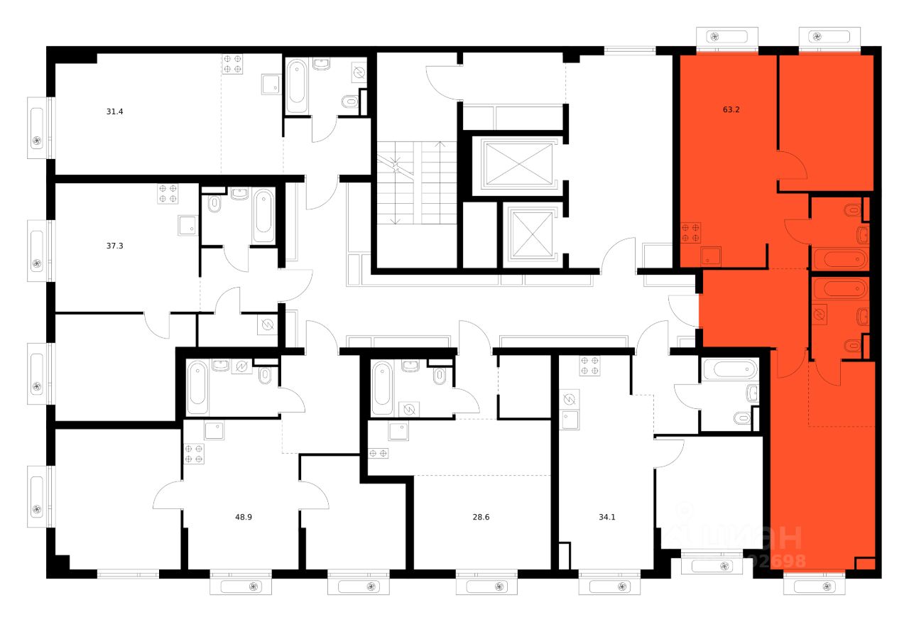 Продаётся 2-комн. квартира площадью 63,2 кв.м на 12 этаже 14 этажного дома (Корпус 69.6, Секция 6) проекта ПИК Саларьево парк. Светлый просторный подъезд на уровне земли, функциональная планировка, большие окна, c отделкой.