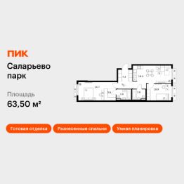 Продаётся 2-комн. квартира площадью 63,5 кв.м на 9 этаже 14 этажного дома (Корпус 69.6, Секция 6) проекта ПИК Саларьево парк. Светлый просторный подъезд на уровне земли, функциональная планировка, большие окна, c отделкой.