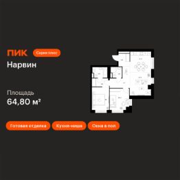 Новостройка! Продается 2-комн. кв-ра площадью 64,8 кв.м, (Корпус 1.3, Секция 3) 27 этаж 38-этажного дома в Нарвин от ПИК. Новый проект ПИК Серии плюс "Нарвин" возводится в Головинском районе Москвы.