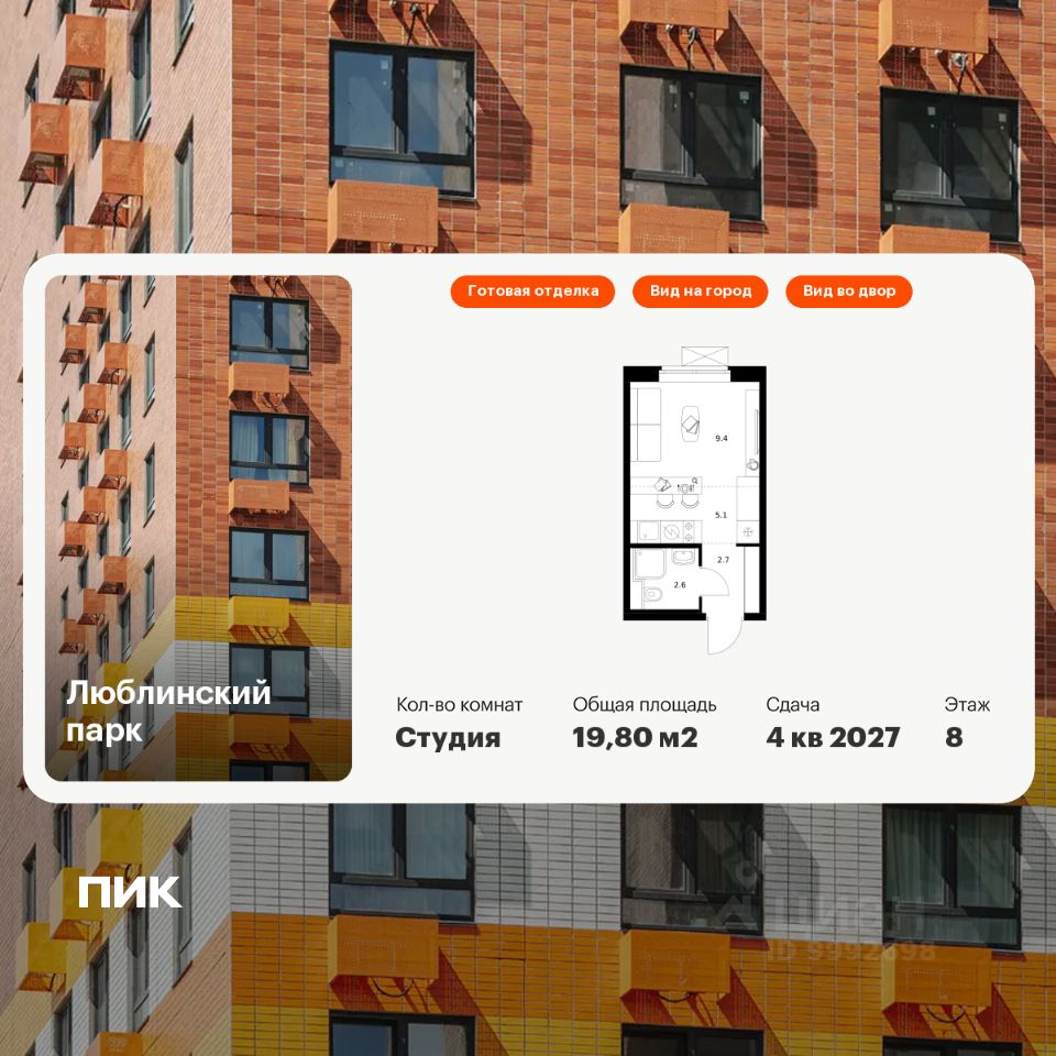 Продаётся квартира-студия площадью 19,8 кв.м на 8 этаже 25 этажного дома (Корпус 19, Секция 1) проекта ПИК Люблинский парк. Светлый просторный подъезд на уровне земли, функциональная планировка, большие окна, c отделкой.