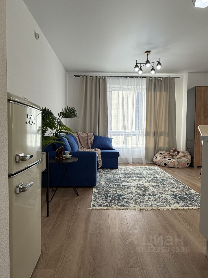 В квартире сделан стильный евроремонт. Пространство организовано максимально функционально: зона отдыха плавно переходит в кухонную, что создает ощущение простора. Окна выходят во двор, что обеспечивает тишину и спокойствие. Совмещенный санузел оборудован всей необходимой сантехникой.