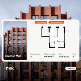 Новостройка! Продается 2-комн. кв-ра площадью 49,81 кв.м, (Корпус 3.4, Секция 4) 2 этаж 32-этажного дома в Квартал Мит от ПИК. "Квартал Мит" строится в экологически чистом районе Митино, где по соседству расположен большой лесопарк, а с двух сторон протекают реки Сходня и Журавка. Для семей с детьми здесь появится школа и два детских сада.