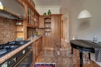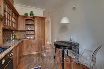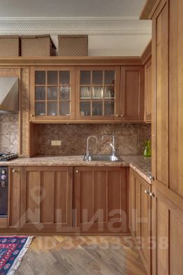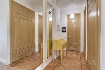 Интерьер выдержан в современном французском стиле, высокие потолки, лепнина и деревянная мебель, изготовленная под индивидуальный проект дополнены паркетом и межкомнатными дверьми, гармонирующими в одной манере.