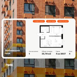 Продаётся 1-комн. квартира площадью 35,7 кв.м на 4 этаже 25 этажного дома (Корпус 18-20, Секция 1) проекта ПИК Люблинский парк. Светлый просторный подъезд на уровне земли, функциональная планировка, большие окна, c отделкой.