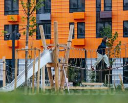 Квартал от мастерской M.A.M. отражает уникальный архитектурный почерк и органично дополняет городской ландшафт. В основе концепции — принцип сомасштабности человеку, благодаря чему внутри проекта формируется комфортное и гармоничное пространство для жизни. Квартал представлен разновысотными корпусами в минималистичном стиле. Образ строится на сочетании мягких пластичных линий и строгих геометрических форм. Рельефные детали в виде вертикальных металлических ламелей добавляют зданиям объём и глубину, делая архитектуру более выразительной. Цветовая гамма фасадов построена на контрасте терракотового и молочно-серого оттенков, которые создают атмосферу тепла и уюта. Магазины, рестораны и полезные сервисы на первых этажах создадут комфортное пространство для покупок, прогулок и встреч за чашкой кофе. Артикул 1020870 (Застройщик АО "СПЕЦИАЛИЗИРОВАННЫЙ ЗАСТРОЙЩИК "ГЛОРИ"")