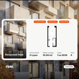 Продаётся квартира-студия площадью 19 кв.м на 6 этаже 27 этажного дома (Корпус 4.5, Секция 6) проекта ПИК Амурский парк. Светлый просторный подъезд на уровне земли, функциональная планировка, большие окна, c отделкой.