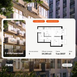 Продаётся 1-комн. квартира площадью 34,9 кв.м на 3 этаже 30 этажного дома (Корпус 1.3, Секция 3) проекта ПИК 2-й Иртышский. Светлый просторный подъезд на уровне земли, функциональная планировка, большие окна, c отделкой.