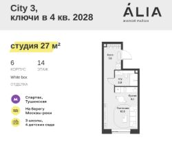 Продаётся Студия 27 м². В жилом районе ALIA на 14-м этаже 28-этажного дома.