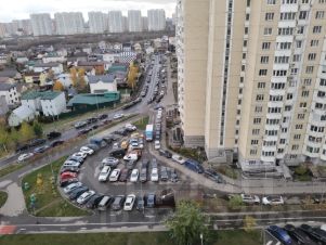 Двор просторный, с парковкой, со шлагбаумами.