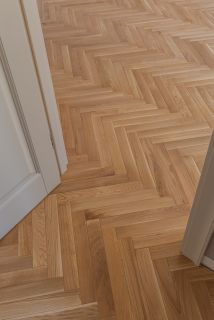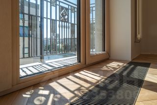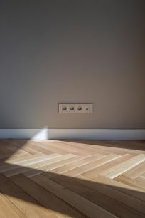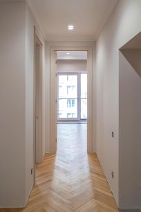 * Премиальные материалы: Стены окрашены датской краской Flgger, элегантность интерьеру придают гипсовые карнизы Петергофф и бесшовный текстиль в спальнях. На полу — натуральный паркет от Киреевской фабрики и итальянский керамогранит Atlas Concorde.