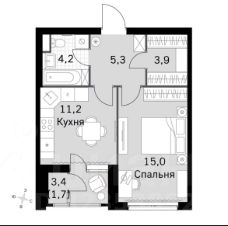 -кухня -гостиная 11.2 м с выходом на балкон;