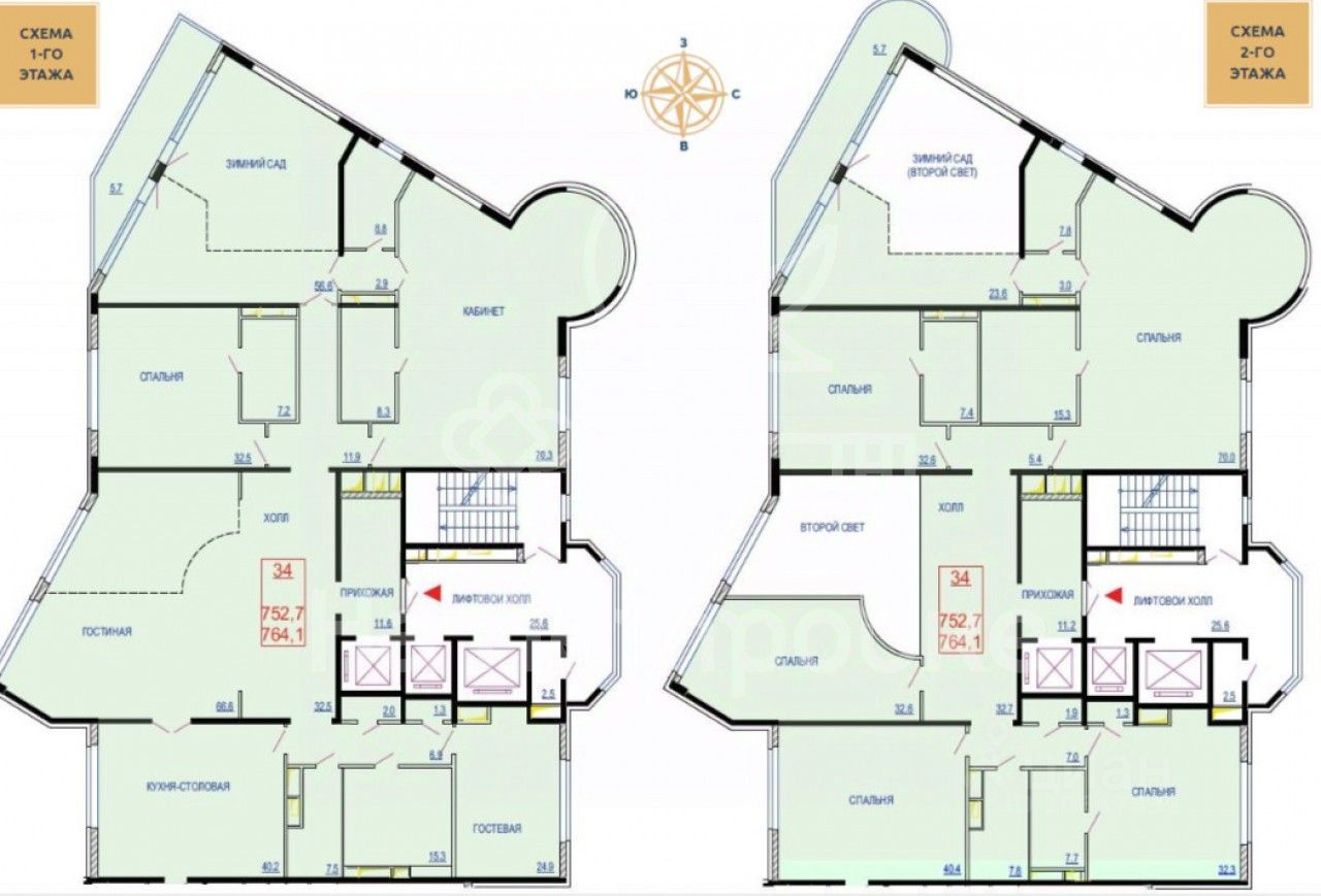 На 13-м и 14-м этажах ЖК "Вавилово" двухуровневый пентхаус площадью 752,7 кв.м.