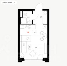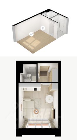 Площадь по обмерам — 19,8м2, потолок — 2.62м. Функциональная планировка.
