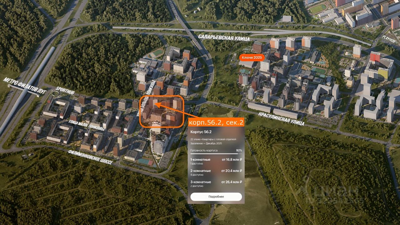 Метро "Филатов луг" — 5 мин пешком от подъезда / 35 мин до "Библиотеки им.Ленина" без пересадок. Рядом с домом — СпортХаб, бальвар, а также парк Филатов Луг.