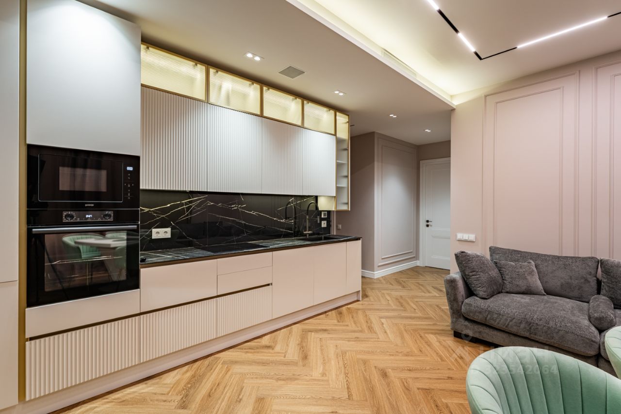 В квартире сделан качественный ремонт с использованием дорогих отделочных материалов, а так же встроенной премиальной кухонной техники немецкой фирмы "TEKA".
