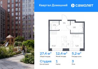Строим кварталы для жизни с заботой о будущем. Предлагается квартира студия комфорт-класса 27,44 кв.м в корпусе 1 на 3 этаже, в ЖК "Квартал Домашний"