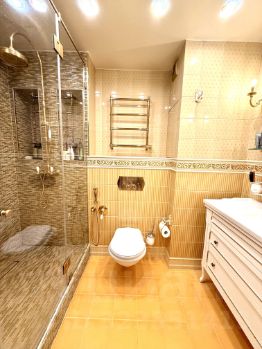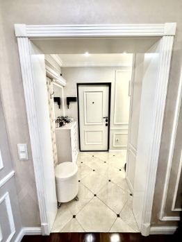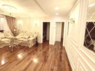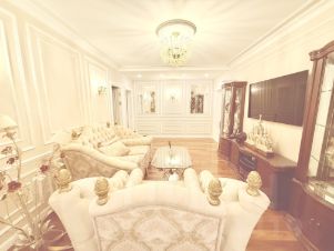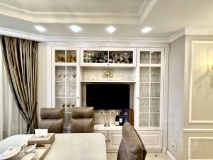 На старте был сделан детальный дизайн-проект премиум-класса. Концепция квартиры была разработана с целью создания большого функционального пространства, предназначенного как для отдыха так и для повседневной жизни. Все зоны оснащены итальянской мебелью, дизайнерскими люстрами и световым решением. Квартира очень светлая и солнечная за счет цветовых решений стен и наличия больших оконных проемов.
